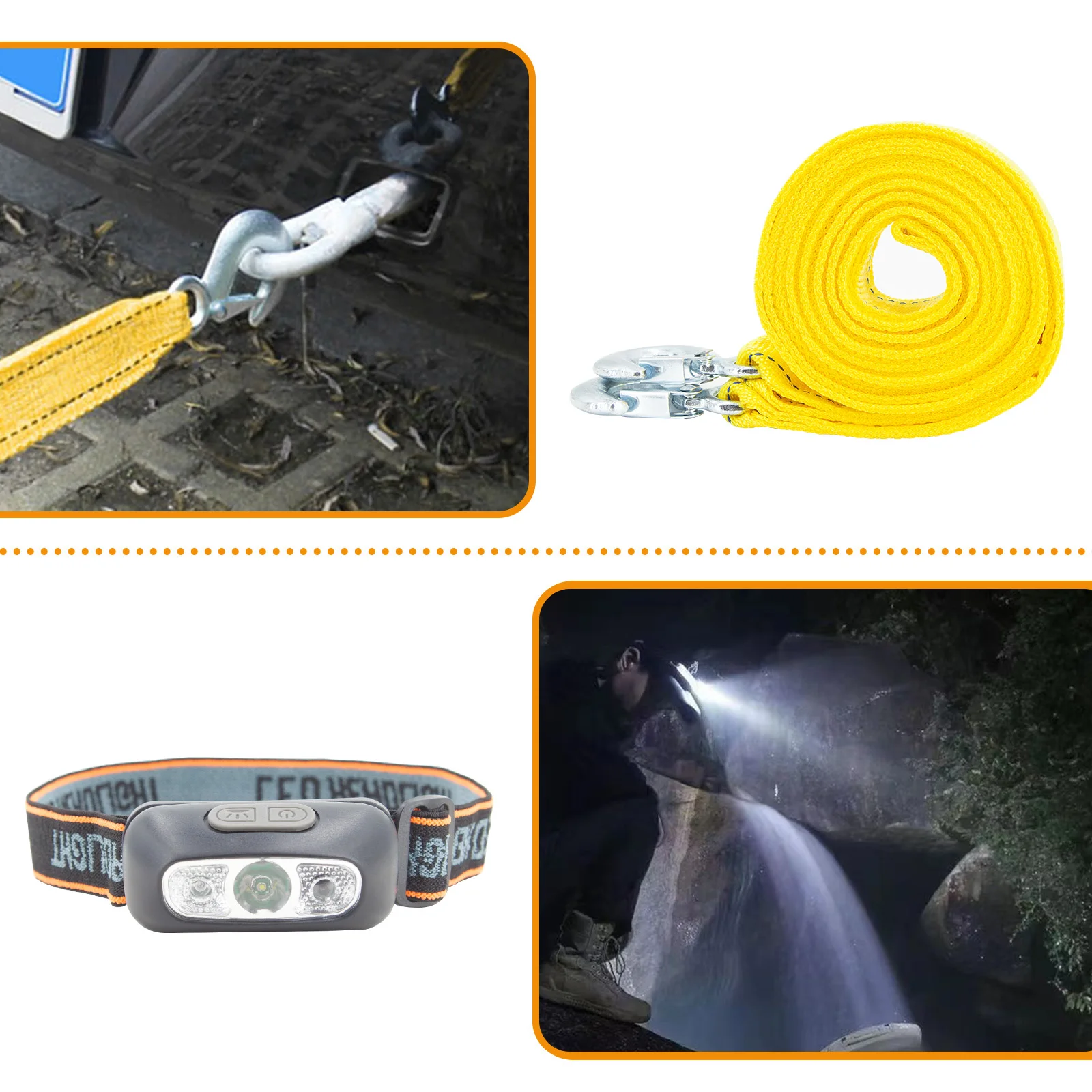 Welcome to Outdoor Equipment Online — making the outdoors safe, fun, and accessible for families with kids. This comprehensive car roadside emergency kit is designed to help drivers stay prepared for unexpected situations on the road. The kit includes essential tools such as a tire repair set, tow strap, pliers, headlamp, reflective vest, warning triangle, tape, and safety hammer to provide assistance when you need it most.