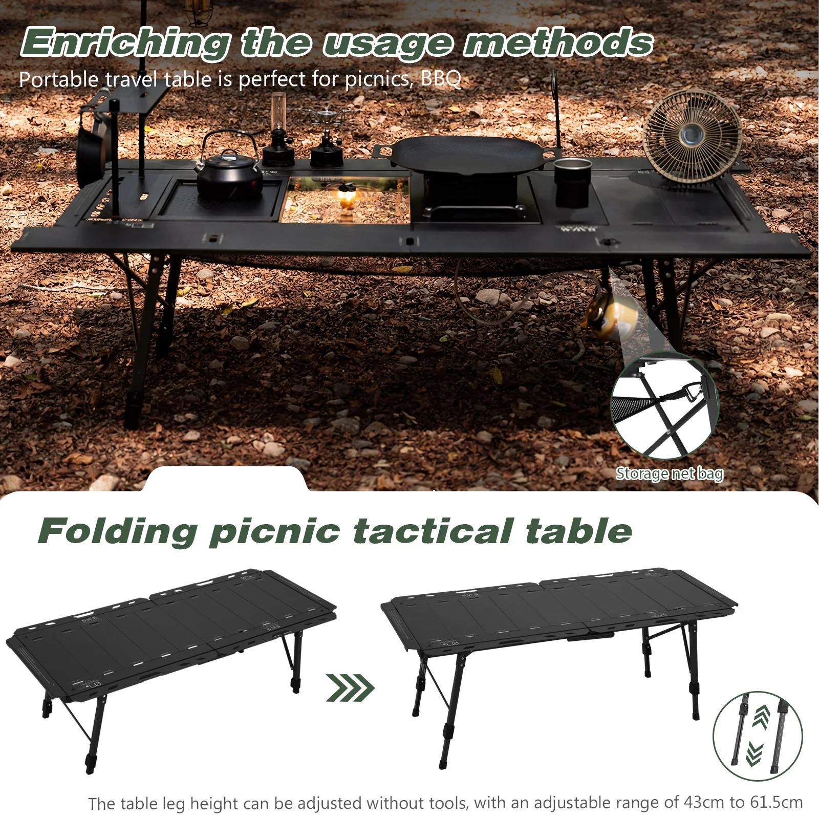The table features adjustable height legs for versatile use and comes with a carry bag for easy transport and storage. Lightweight and portable, it’s perfect for camping trips, family outings, or any outdoor adventure where convenience and reliability matter. It’s everything your family needs to get outside with confidence — from the first campfire to the next big adventure.