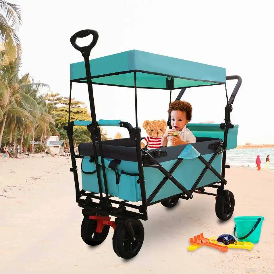 Welcome To Outdoor Equipment Online — making the outdoors safe, fun, and accessible for families with kids. This foldable camping wagon with roof is designed to make outdoor trips easier, more comfortable, and family-friendly. Perfect for beach days, camping trips, and garden use, it provides a convenient way to transport gear, supplies, and even give kids a shaded ride, helping everyone enjoy the outdoors with ease.