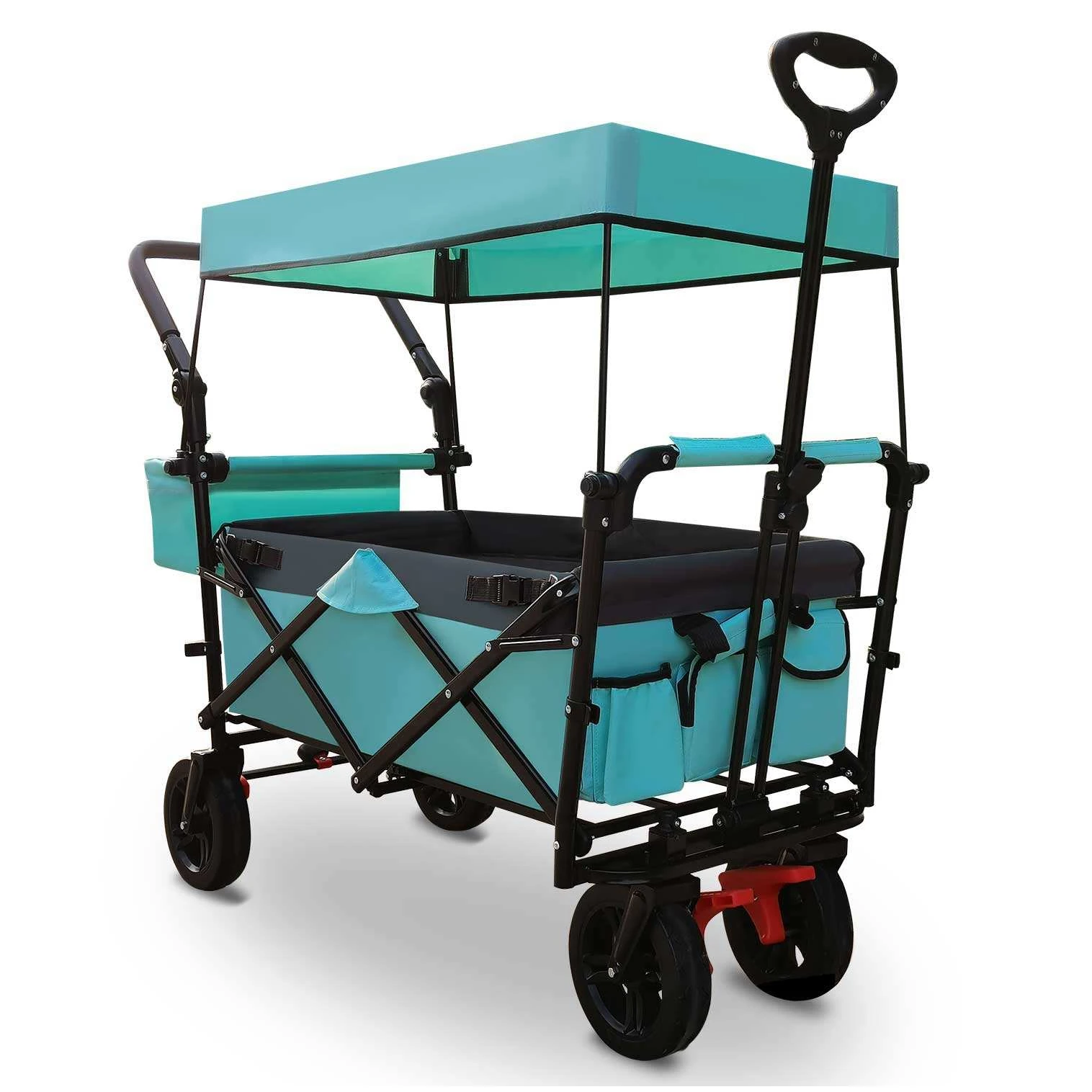 Built for durability and convenience, this wagon features a sturdy frame and a foldable design for easy storage and transport. The attached canopy offers protection from sun exposure, keeping kids and items cool and comfortable. From your first family picnic to extended outdoor adventures, this versatile wagon keeps everything organized, protected, and ready for fun.